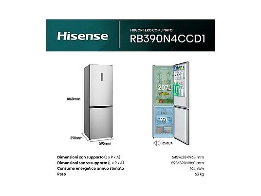 HISENSE RB390N4CCD1 FRIGORIFERO COMBINATO