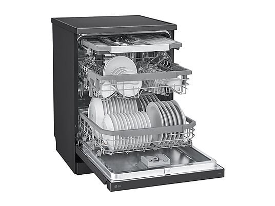 La lavastoviglie LG DF365FMS è un modello a libera installazione con capacità di carico fino a 14 coperti, ideale per famiglie o uso quotidiano intenso.